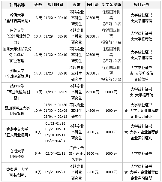 为促进我校学生开展海外学习实践,开拓国际化视野,我校拟于2018年寒假期间推出哈佛大学、纽约大学、加州大学洛杉矶分校(UCLA)、剑桥大学、悉尼大学、新加坡国立大学、香港中文大学、香港大学、香港理工大学等海外访学项目。为了做好本次报名工作,我校特邀请项目负责人来校进行项目说明,详细介绍项目内容、报名要求以及报名流程,欢迎广大师生前来参加。